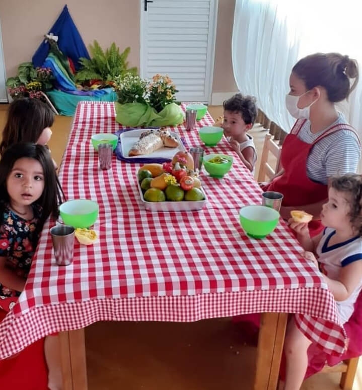 A equipe segue a orientação do pediatra e da família para a alimentação até o momento em que os bebês já puderem participar da rotina alimentar na escola.